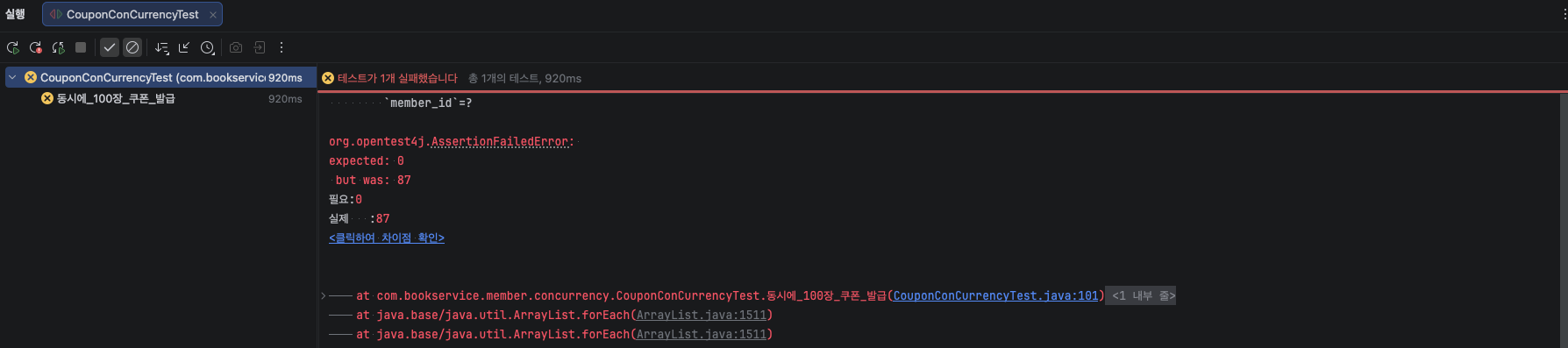 동시에 여러 스레드가 쿠폰을 발급하는 기능에 대해 발생되는 동시성 문제가 있었습니다.