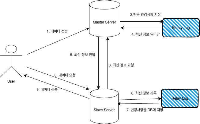 복제의 대상이 되는 DB 서버를 Master 서버라 하고, 데이터가 복제된 DB 서버를 Slave 서버라 부른다.